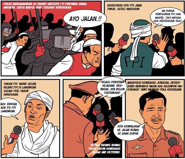 Okeeh, kartunmania gak akan berpolemik lebih jauh tentang masalah ini. Kita simak saja kasus bentrok FPI dengan warga Lamongan yang diilustrasikan oleh Eko Sudjarwo, Nala Edwin, Norma Anggara dan dimas pada Majalah detik edisi 19 Agustus 2013 ini. Cekidot…